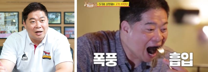 실제로 현주엽 감독은 유튜브 채널 '먹보스 쭈엽이'를 운영 중입니다. 해당 채널의 구독자 수는 76만명으로, E채널 예능 '토요일은 밥이 좋아'에도 출연하고 있습니다. 즉, 현주엽이 메인인 먹방 채널만 2개인 것입니다.